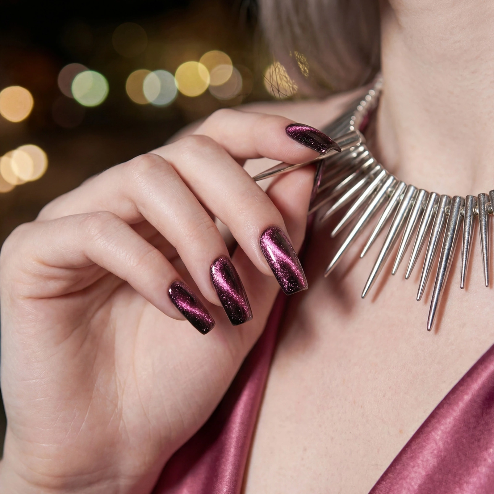 • Golden Saturn – ciepły, złocisty odcień z magnetyczną smugą cat eye, który daje elegancki, biżuteryjny efekt i dobrze odbija światło.