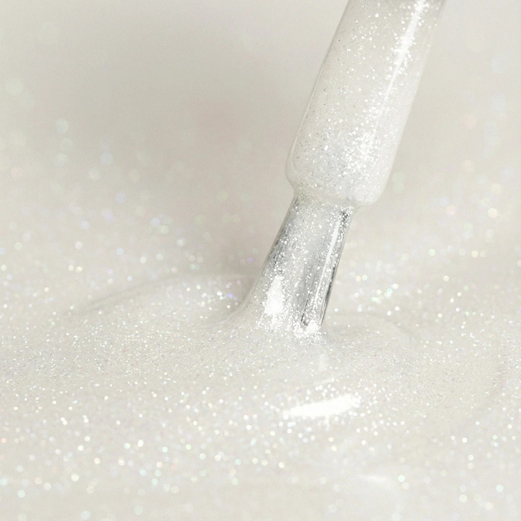 Zalety lakieru hybrydowego Kabos Gelike 047 Powder Sugar z brokatem