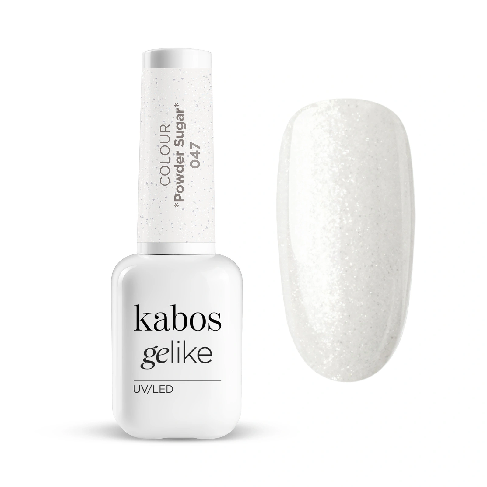 Lakier hybrydowy Kabos Gelike 047 Powder Sugar z brokatem to jasny, „cukrowy” odcień z drobinkami, który daje efekt czystej stylizacji z delikatnym błyskiem. W lakierze hybrydowym Gelike 047 Powder Sugar zostało połączone wygodne nakładanie z eleganckim wykończeniem, dlatego sprawdza się zarówno na co dzień, jak i wtedy, gdy manicure ma wyglądać bardziej „świątecznie”. Odcień Powder Sugar rozświetla dłonie i pasuje do wielu stylizacji, a brokatowe drobinki budują subtelny, świecący efekt w świetle.