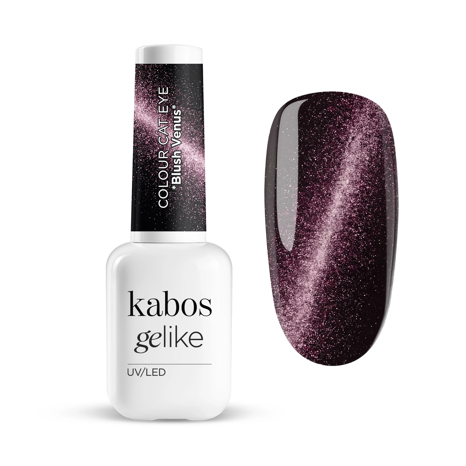 Lakier hybrydowy Kabos Gelike Cat Eye Blush Venus 8 ml to magnetyczny lakier hybrydowy, który pozwala uzyskać charakterystyczny efekt cat eye z wyraźną smugą i głębią koloru. Połączenie ciemnej bazy z jasną, perłową smugą sprawia, że stylizacja wygląda na dopracowaną, nawet gdy na paznokciach znajduje się tylko jeden kolor. Lakier hybrydowy Gelike Cat Eye Blush Venus przyciąga światło i zmienia się w zależności od kąta patrzenia, bez potrzeby stosowania dodatkowych zdobień.