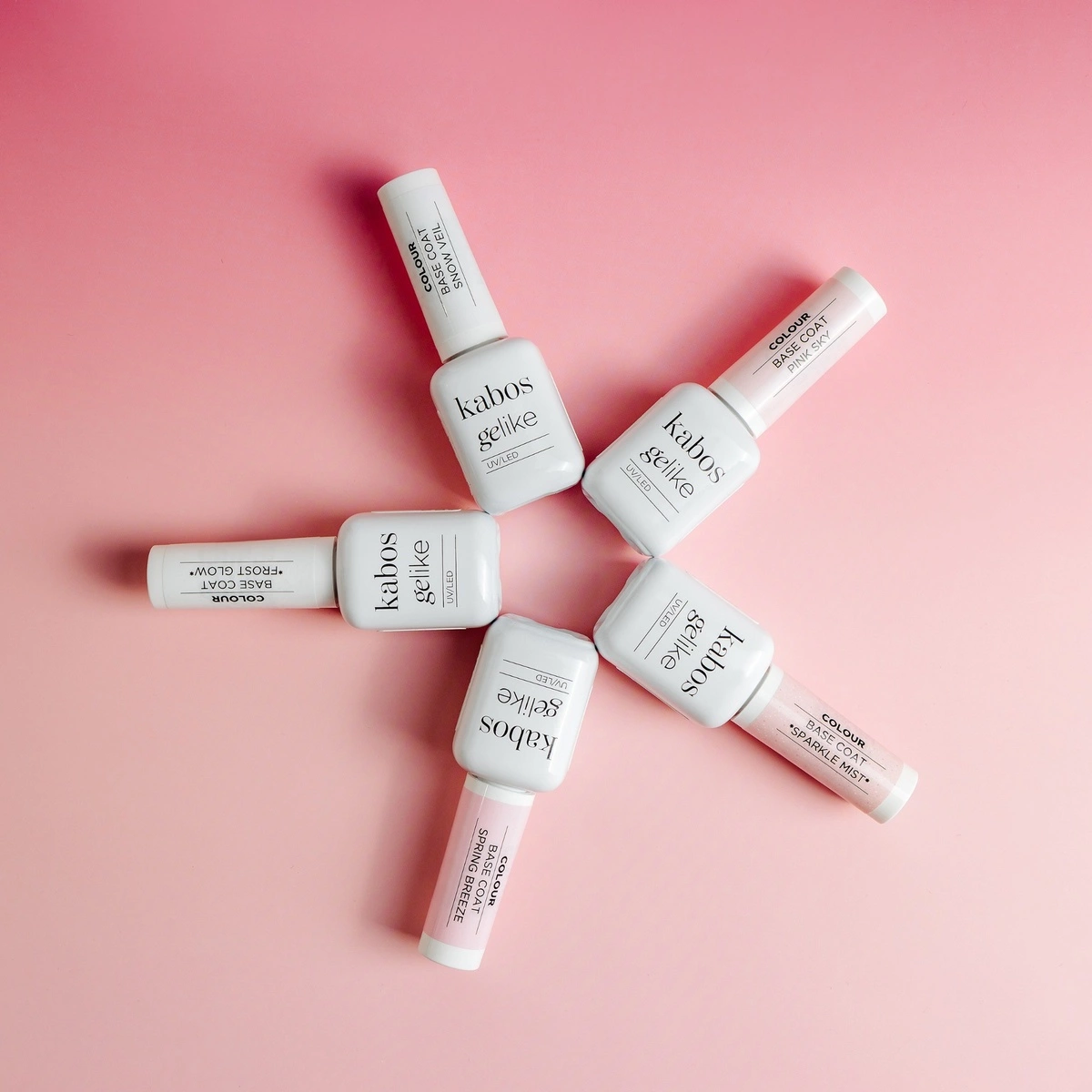 - Nałóż cienką warstwę Colour Base Coat Kabos Gelike Spring Breeze i utwardź w lampie 60–90 sek.