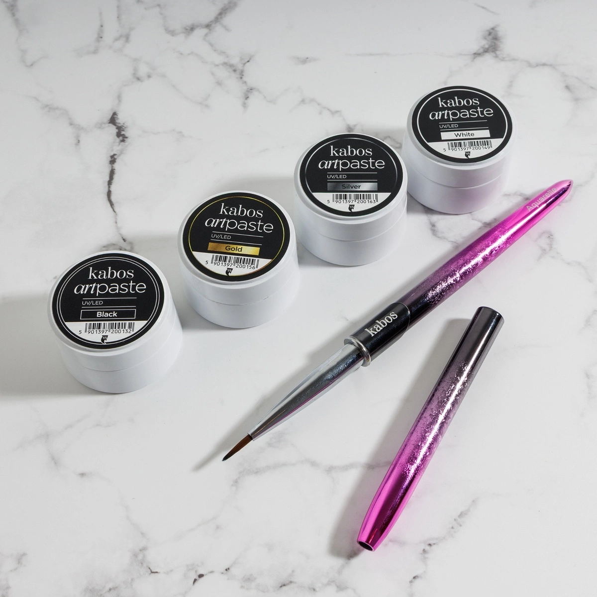 ArtPaste Kabos to produkt, który pozwala puścić wodze fantazji i wykonać zarówno minimalistyczne zdobienia, jak i efektowne, przestrzenne wzory. Dzięki temu, że pasta do zdobień w kolorze black nie spływa i dobrze utrzymuje się na pędzelku, praca staje się szybka i precyzyjna. Wysoka pigmentacja Kabos ArtPaste gwarantuje wyraziste wzory i eleganckie zdobienia paznokci.