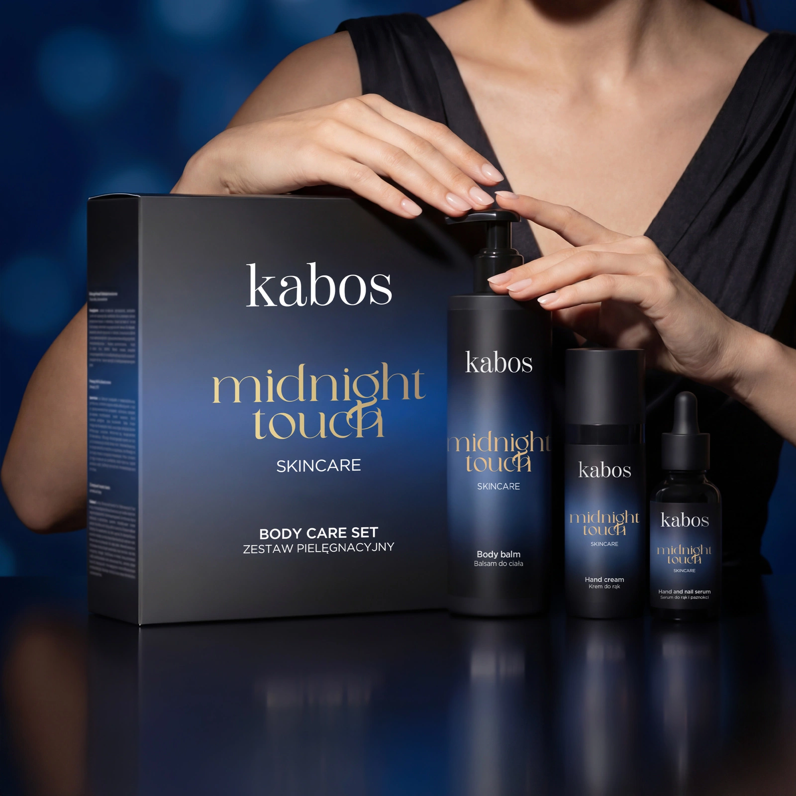 Zestaw Midnight Touch to idealne rozwiązanie dla osób, które chcą zadbać o skórę w sposób spójny i kompleksowy – od skórek po całe ciało. Zestaw Midnight Touch zapewnia:
